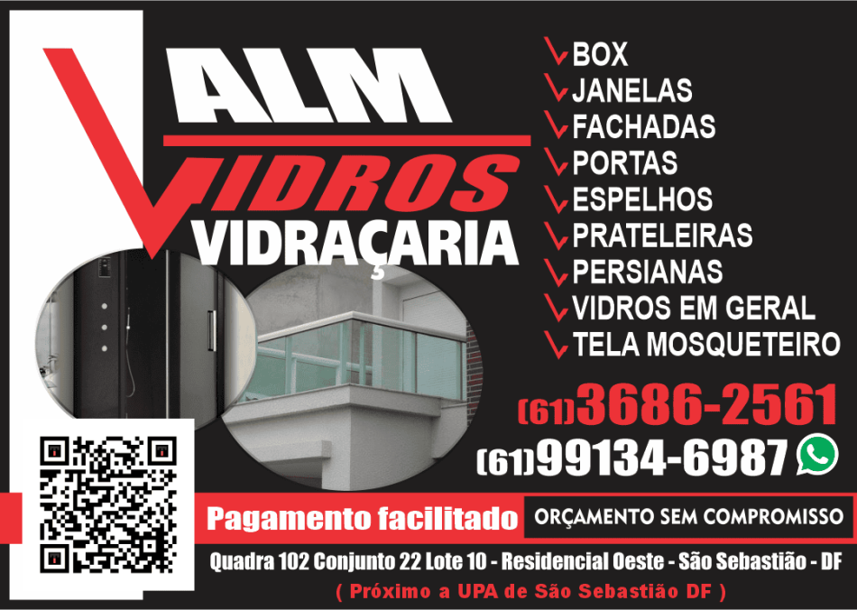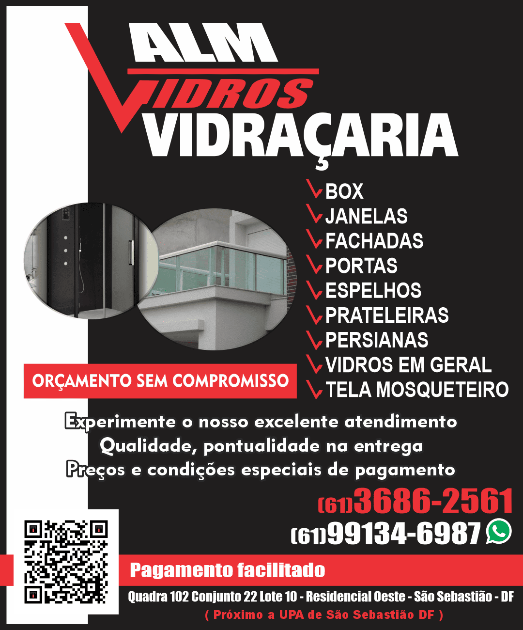 “Experimente o nosso excelente atendimento, qualidade, pontualidade na entrega, preços e condições especiais de pagamento. ALM Vidros.
