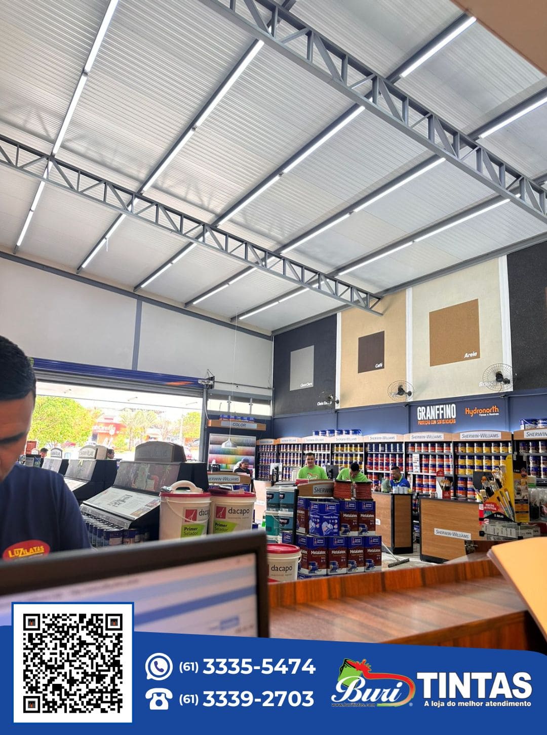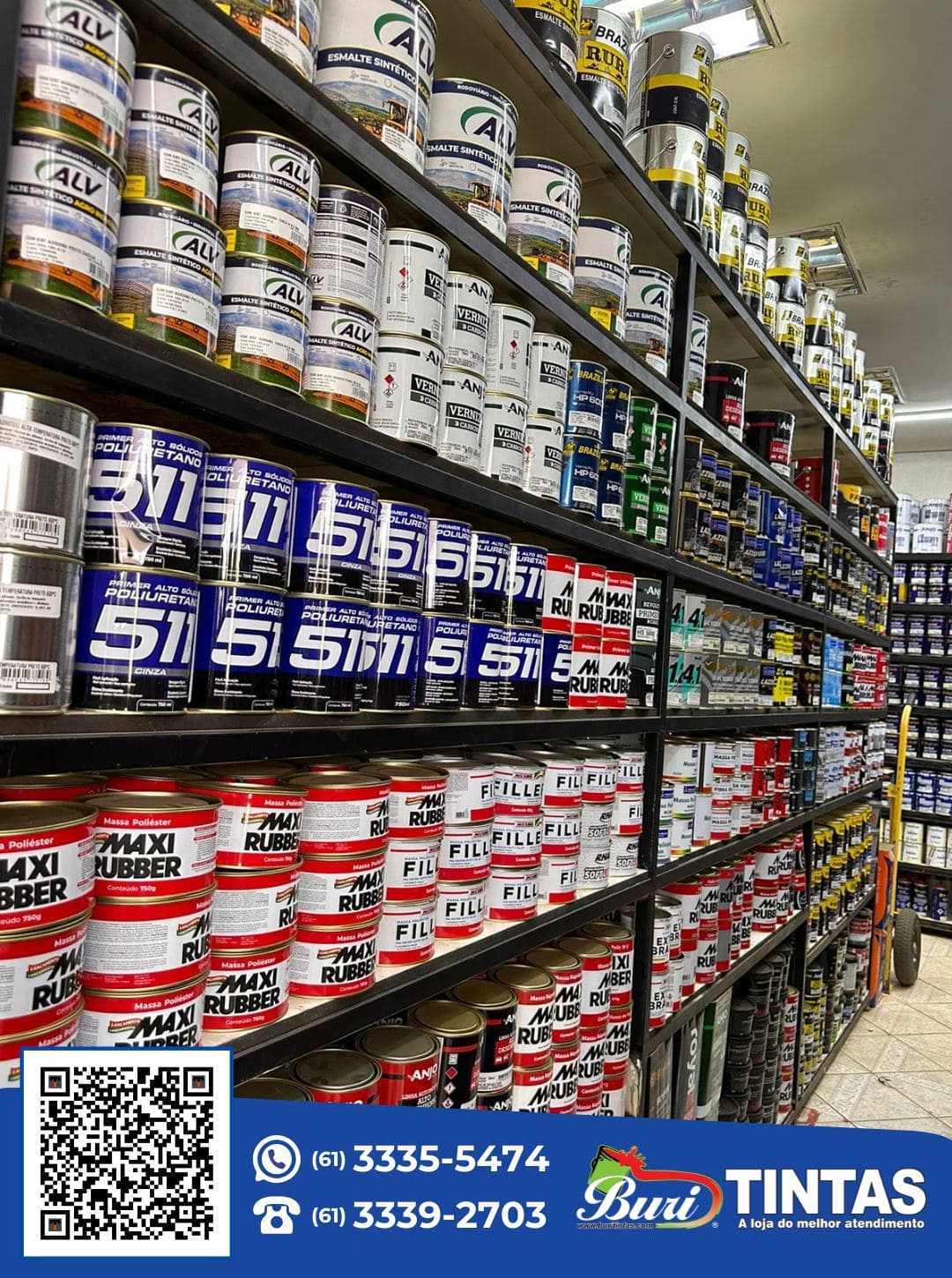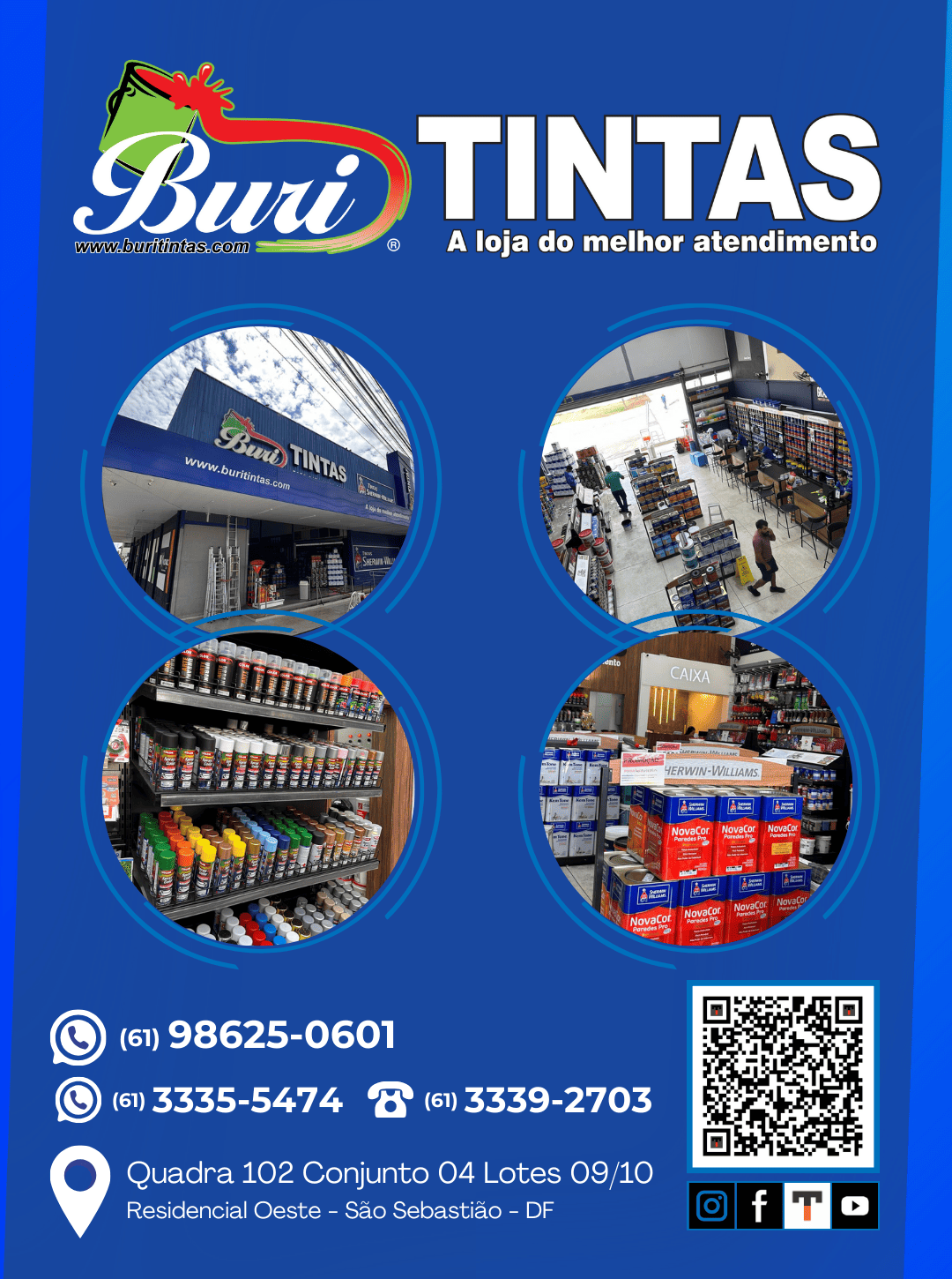 “O lugar certo para dar cor e vida a sua casa, veículos ou escritório. Buri Tintas.