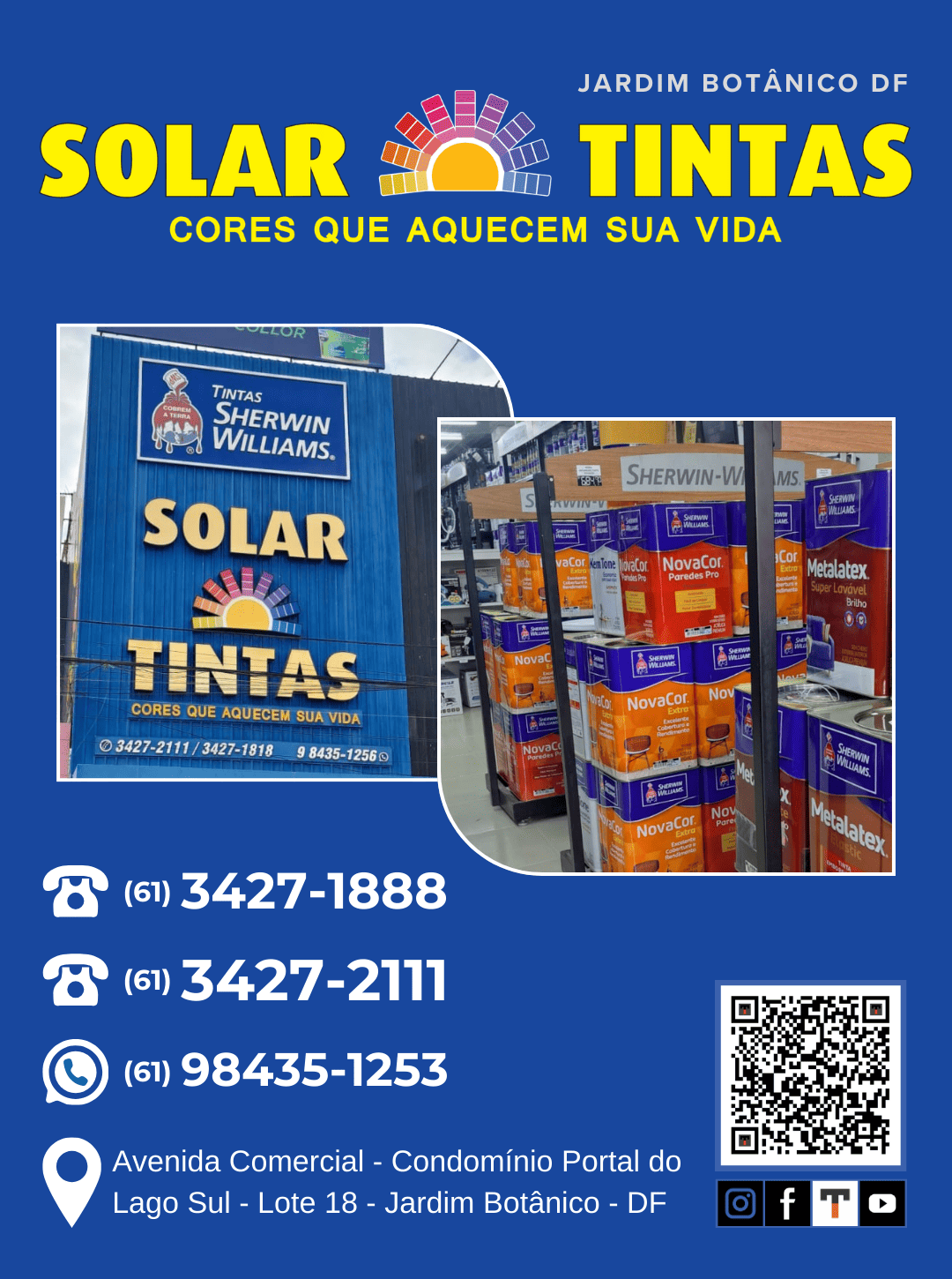 “Cores para sua vida e sua casa, escritório ou veículos. Solar Tintas (Jardim Botânico – DF).