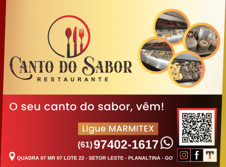 Restaurante Canto do Sabor – EMPRESA – PLANALTINA – GO – BR 20 de maio de 202413 de outubro de 2024João CelestinoSem comentáriosCompartilhe com o mundo! ⇓ Citação (frase) “Que tal! Conhecer o nosso canto do sabor, ligue MARMITEX ou faça uma…