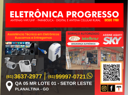 Eletrônica Progresso – Antenas e Serviços – EMPRESA – PLANALTINA – GO – BR 13 de junho de 20156 de maio de 2024João CelestinoSem comentáriosCompartilhe com o mundo! ⇓ Citação (frase) “Tudo em eletrônica e antenas, produtos e serviços de qualidade para a total…