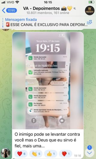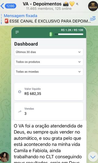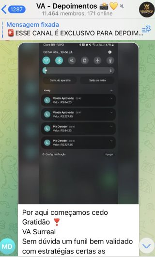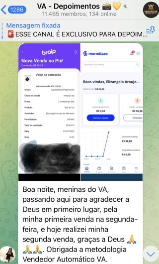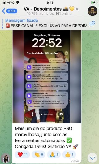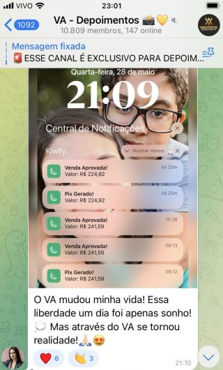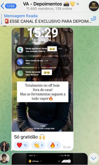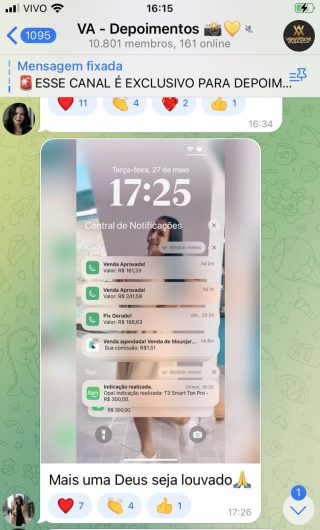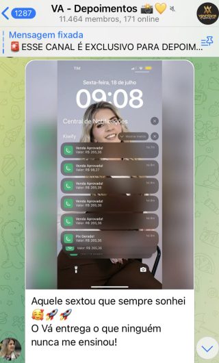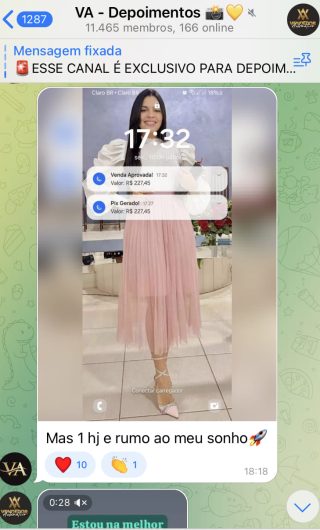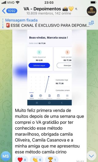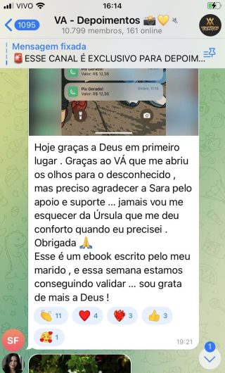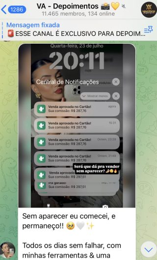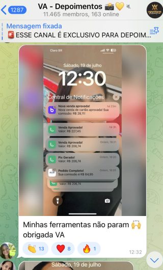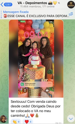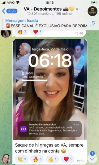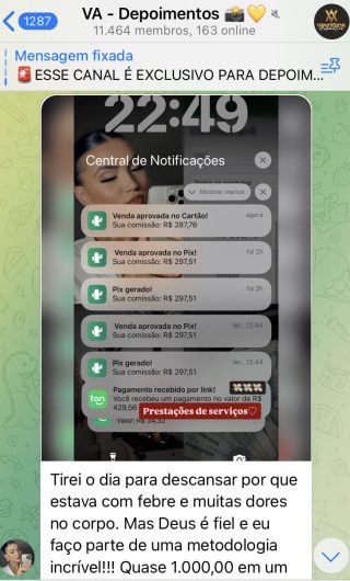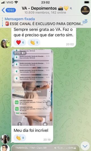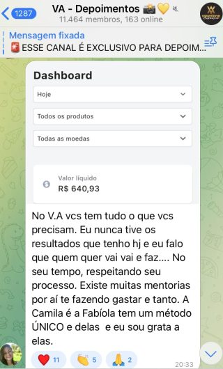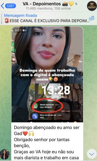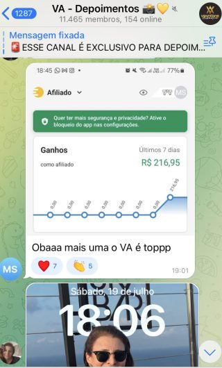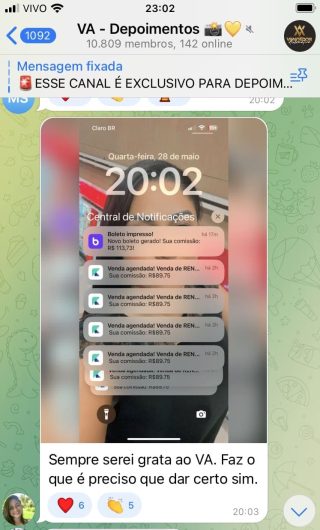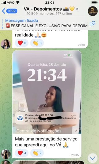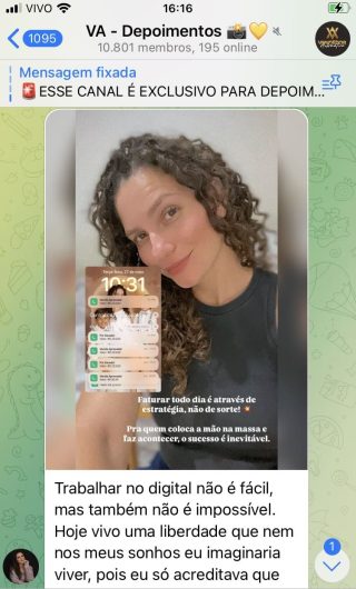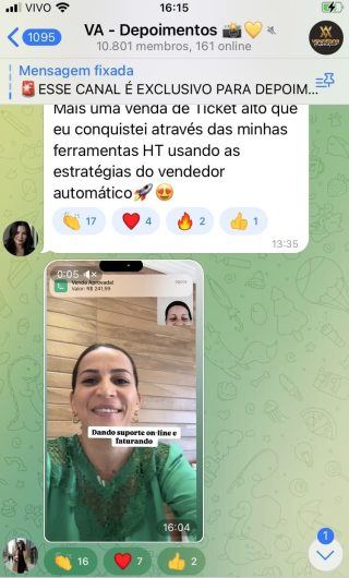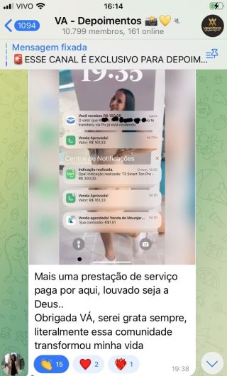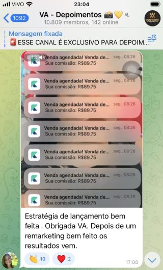 O VA tem até 3 canais: O primeiro de Depoimentos com mais de 10.000 membros, onde postam os seus resultados, são milhares mas separamos 146 resultados abaixo de forma variada e aleatória; o segundo de Avisos para as comunicações aos membros; o terceiro de Suporte para apoiar no desenvolvimento dos membros da comunidade. Achamos toda essa estrutura disponibilizada como um auto grau de transparência e profissionalismo, é do tipo pegar na mão e conduzir, apoiar.