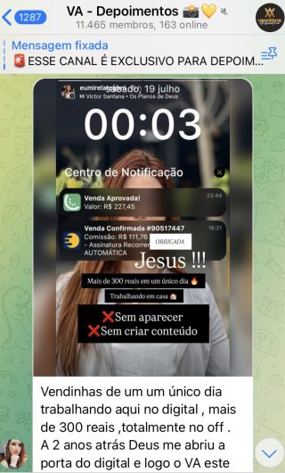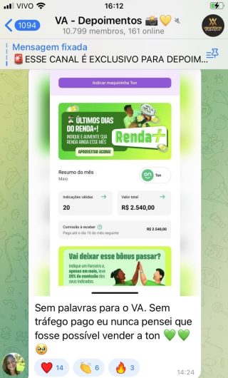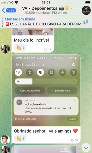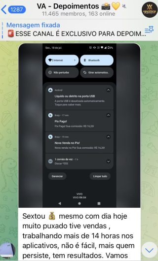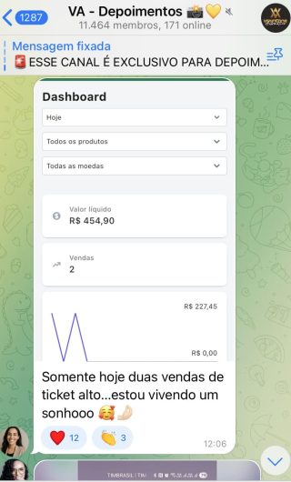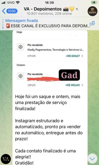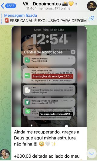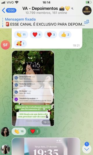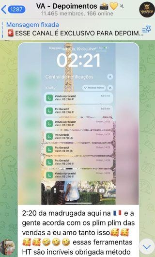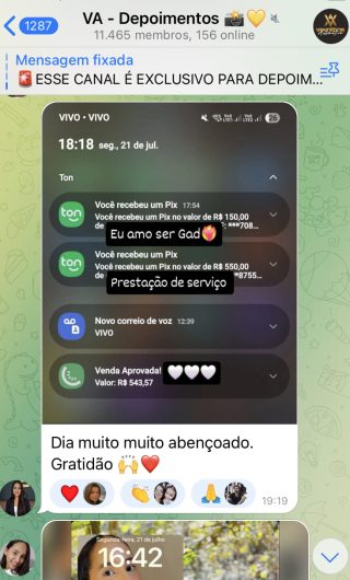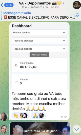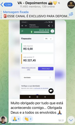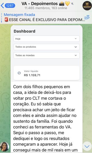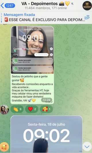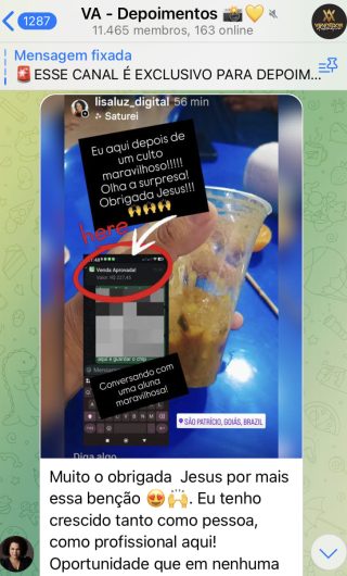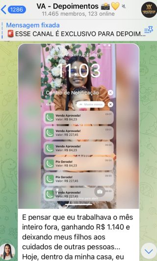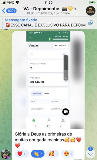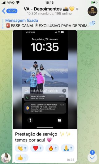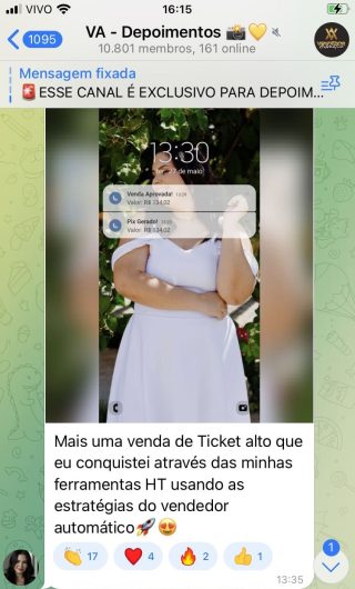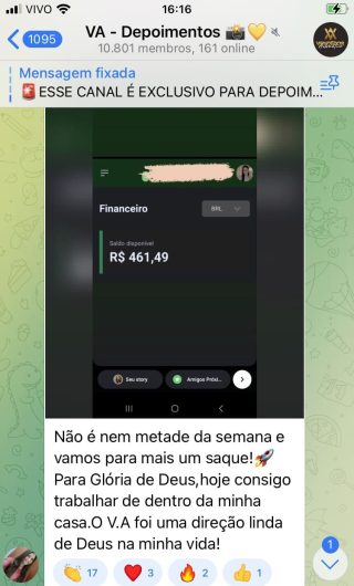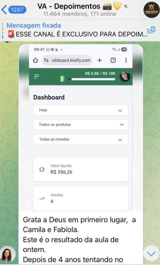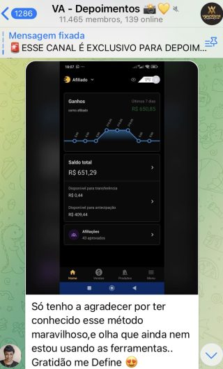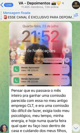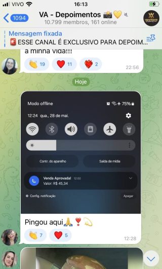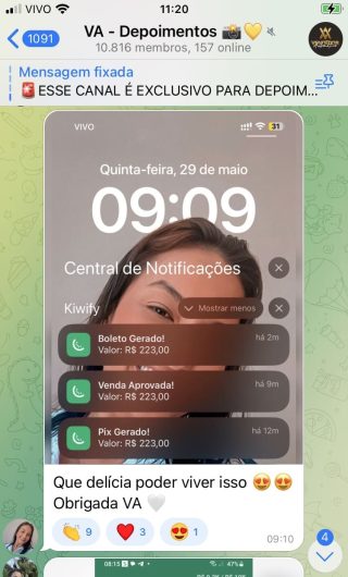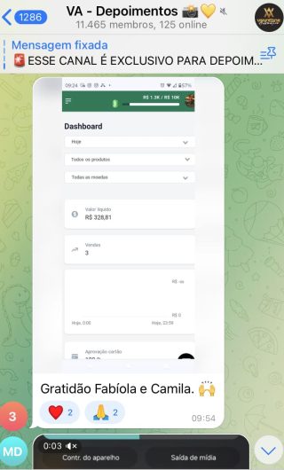 O VA tem até 3 canais: O primeiro de Depoimentos com mais de 10.000 membros, onde postam os seus resultados, são milhares mas separamos 146 resultados abaixo de forma variada e aleatória; o segundo de Avisos para as comunicações aos membros; o terceiro de Suporte para apoiar no desenvolvimento dos membros da comunidade. Achamos toda essa estrutura disponibilizada como um auto grau de transparência e profissionalismo, é do tipo pegar na mão e conduzir, apoiar.