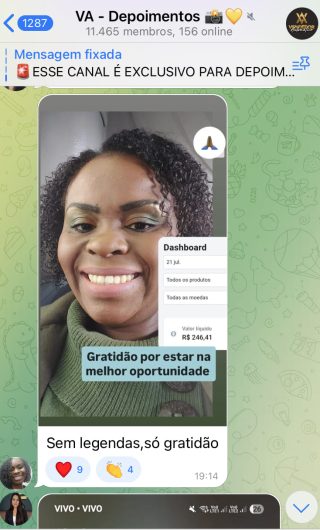- A decisão está em suas mãos. Dê uma chance a você mesmo! Apresentação ao vivo do VA: Entrar no grupo (WhatsApp).